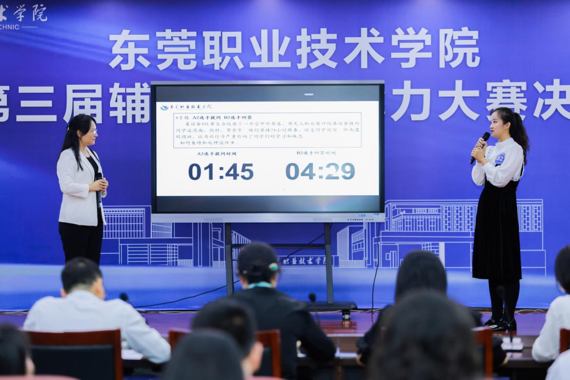 广东省应急管理心理专家、教育部高校辅导员培训与研修基地(华南师范大学)首席专家苏亚玲,东莞理工学院党委学生工作部副部长、学生处副处长柳卓君,广东外语外贸大学数学与统计学院团委书记、第八届广东省辅导员素质能力大赛一等奖获得者薛达,我校学生处处长李浩泉,第五届高校辅导员职业能力大赛全国决赛三等奖获得者、我校纪检室邓雨鸣担任比赛评委。