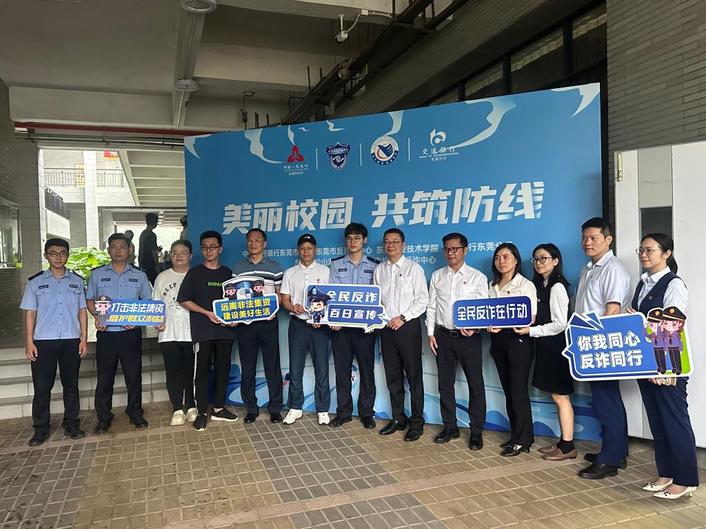 6月12日下午,我校保卫处联合东莞市公安局松山湖分局反诈中心、交通银行东莞分行在我校崇德楼107课室开展主题为“守住钱袋子,护好幸福家”的金融反诈宣传讲座,讲座由松山湖公安分局反诈中心谭鑫宇警官主讲。讲座共有200余人参加。