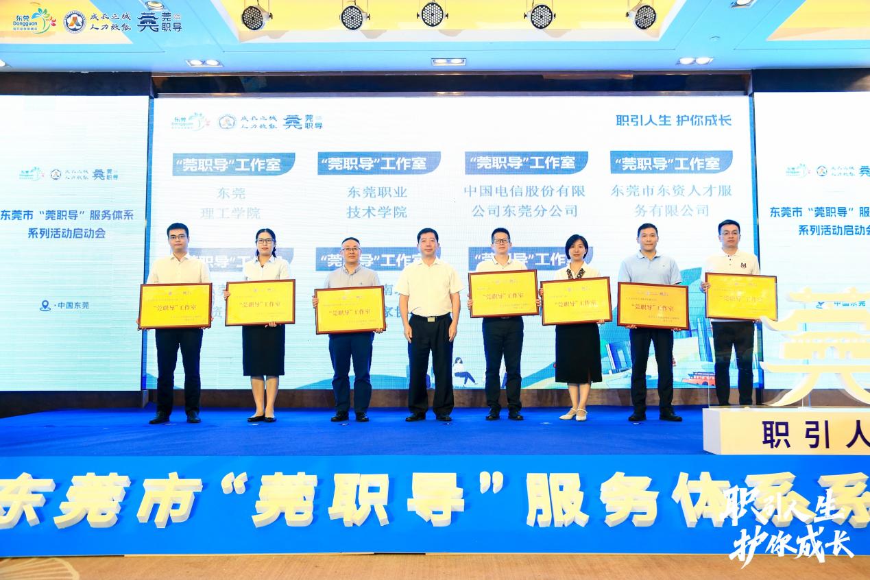 东莞市人力资源和社会保障局相关领导在活动现场强调了职业指导在推动高质量就业中的重要作用,并高度评价了举办此类竞赛的意义,并为高校、企业、行业协会、人力资源机构代表举行“莞职导”工作室授牌仪式,我校作为代表之一获“莞职导”工作室牌匾。
