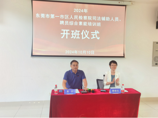 10月10日,2024年东莞市第一市区人民检察院司法辅助人员、聘员综合素能第一期培训班在我校培训楼开班。东莞市第一市区人民检察院党组成员、政治部主任翟靖宜,我校继续教育学院院长苏江出席开班仪式,来自东莞市第一市区人民检察院的52名司法辅助人员、聘员参加培训。