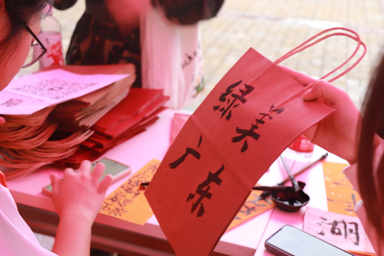 10月16日,我校学前教育与人文学院举办的“笔墨东职”大学生书画活动在树蕙餐厅(第二饭堂)门口展开。本次书画活动以“绿美广东”为主题,广大师生热情响应,纷纷挥毫泼墨,以书法书写对自然之美的颂歌。