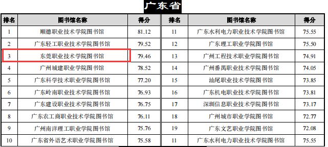 此次评价中,东莞职业技术学院图书馆荣登全国高职高专图书馆影响力排行榜第5名,广东省高职院校第3名,获评五星级图书馆(5★为具有突出影响力的图书馆,即排在最前面的10%)。这一荣誉充分体现了我校图书馆在基础条件保障、资源建设、信息服务、阅读推广、网站建设、新媒体运营及网络影响力拓展等方面的显著成绩。