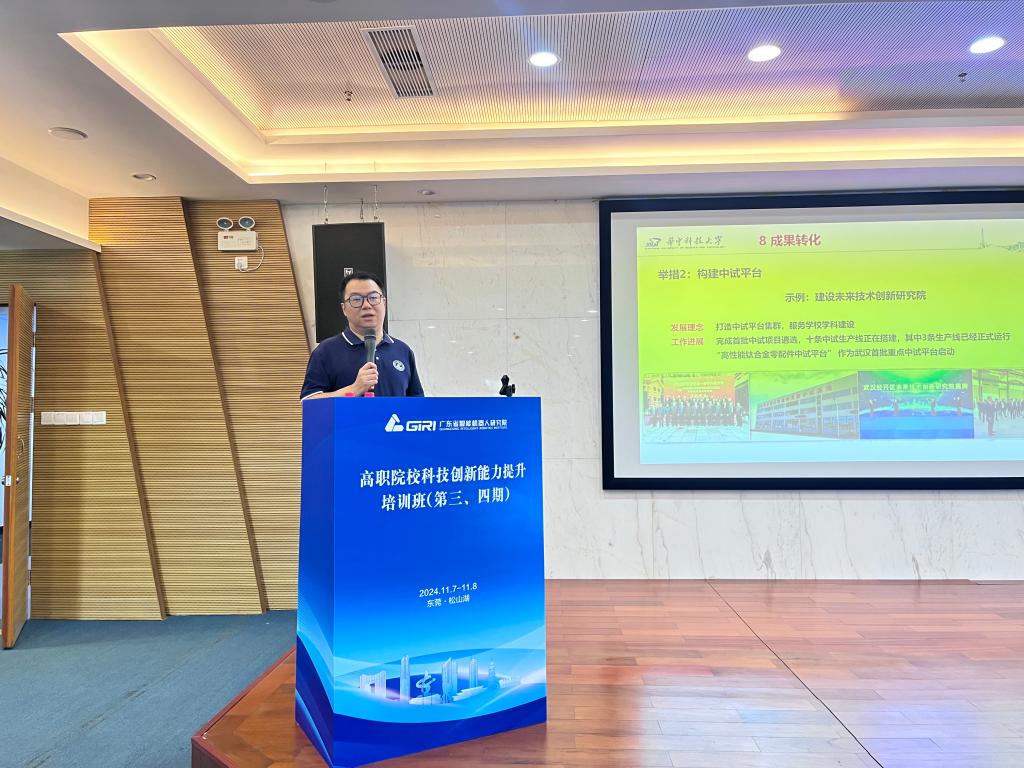 本次培训采用了线下授课、现场实地参观学习、座谈交流等形式相结合展开,大大提升了培训效果。华中科技大学应用技术研究院教授房慧明在《高校创新体系建设及成果转化实践》专题授课中,从科研机构管理、成果转化工作制度、科技创新激励机制、科研诚信等方面重点讲解了科技创新体系的建立要点,并以华中科技大学为例,讲述了学校如何有效实现成果转化。他强调,高校科技创新要在实现重大原始创新突破上下功夫,要在攻克“卡脖子”问题的基础理论和关键技术上下功夫,要在服务国家区域创新发展战略上下功夫,要在提升行业产业发展核心竞争力上下功夫。