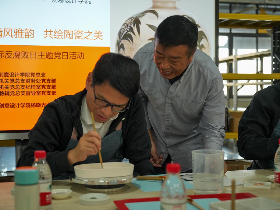 为深入贯彻落实习近平总书记新时代中国特色社会主义思想和党的二十届三中全会精神,加强廉洁教育,优化政治生态,我校于12月9日在杨晓光大师工作室举办了“阅享清风雅韵 共绘陶瓷之美”——12·9国际反腐败日主题党日活动。活动由创意设计学院党总支联合机关党总支财务处党支部、纪检室党支部、教辅党总支质量管理办公室党支部共同举办,校党委副书记、纪委书记蔡东宝、创意设计学院院长兼财务处处长陈炯然、质量管理办公室主任张海鹰、机关党总支书记郭琳等四十多名党员参加了活动。
