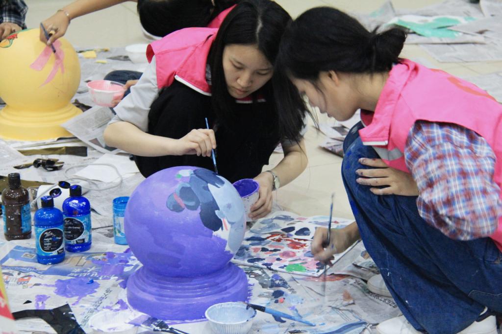 3月15日,创意设计学院美丽乡村彩绘团在道滘校区开展了一场别开生面的校园石墩彩绘活动。