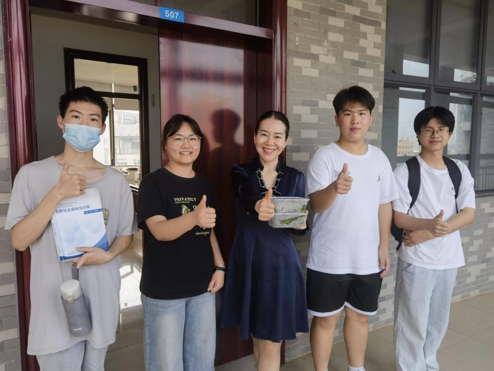 同学们随后将亲手制作的艾角赠予老师们品尝。“感谢老师们平日里的辛勤付出!这盒艾角不仅承载着药香,更饱含着我们的感恩之心。”学生宋秋裕在赠送时说道。