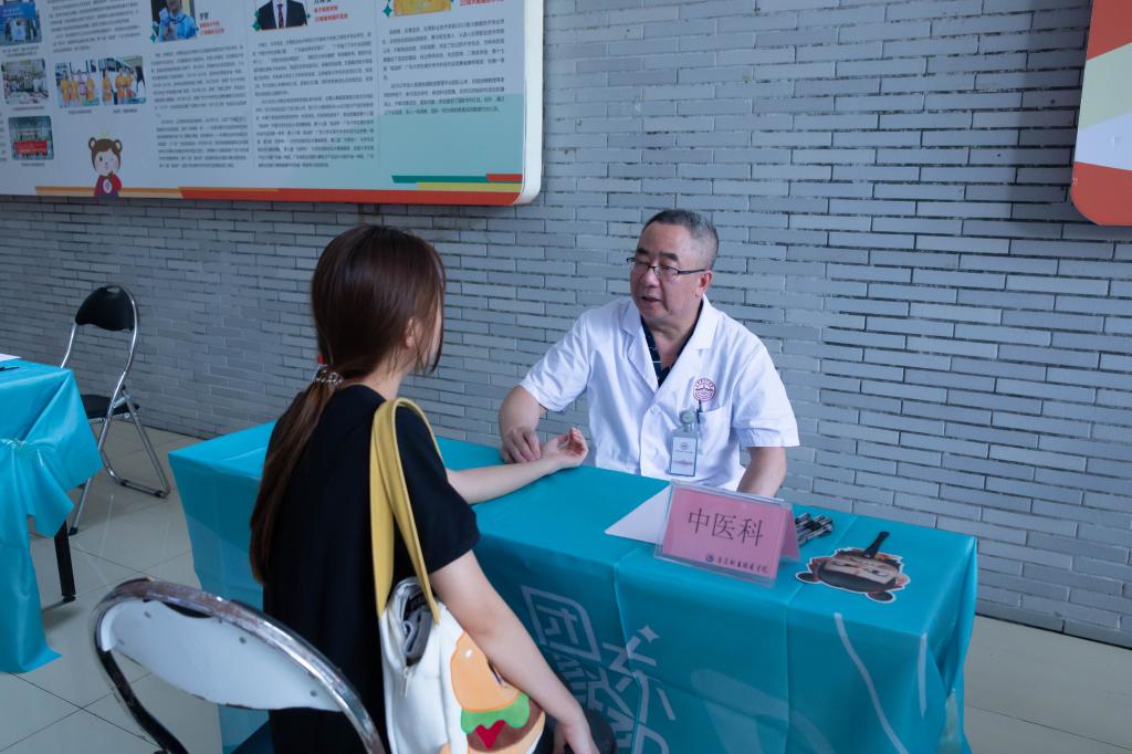 宣讲结束后,东莞市人民医院的专家团队“摆摊设点”,为师生提供义诊服务,为“奶茶党”“外卖族”定制科学饮食计划,现场进行中医辨证,解答学生痘痘反复、失眠脱发等常见问题,开具“校园版”健康处方。