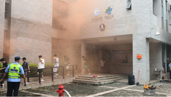 演练以学生宿舍突发火情为背景,通过释放发烟罐模拟火灾场景,宿舍管理员知情后第一时间启动应急预案,按照处置流程迅速开展相关工作。