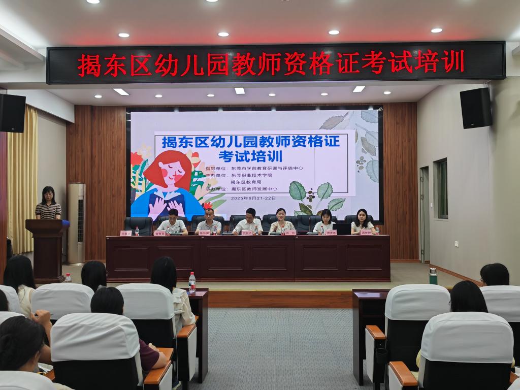 为深入贯彻落实省委、省政府关于百校联百县助力“百千万工程”行动的决策部署,扎实推进“双百行动”结对共建工作,6月21日至22日,由东莞职业技术学院、揭东区教育局联合主办的“幼儿园教师资格证考试培训”在揭东区教师发展中心顺利举行。本次培训由东莞市学前教育研训与评估中心提供专业指导,全区170余名幼儿园教师参加培训。
