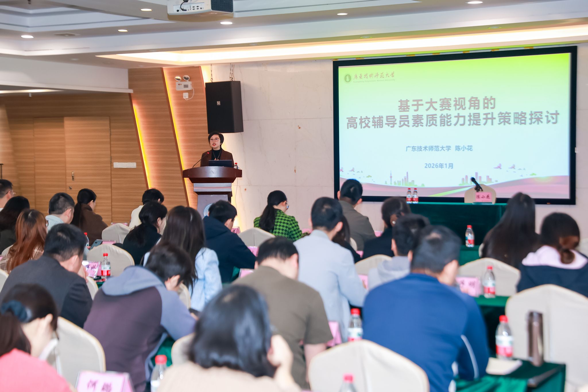 1月16日上午,学生处在图书馆四楼展示交流中心举办辅导员素质能力大赛专题讲座。本次讲座特邀党的十九大代表,全国最美高校辅导员、全国辅导员年度人物、广东技术师范大学网络空间安全学院党委书记陈小花教授担任主讲人,各二级学院党总支副书记及全体辅导员参加。