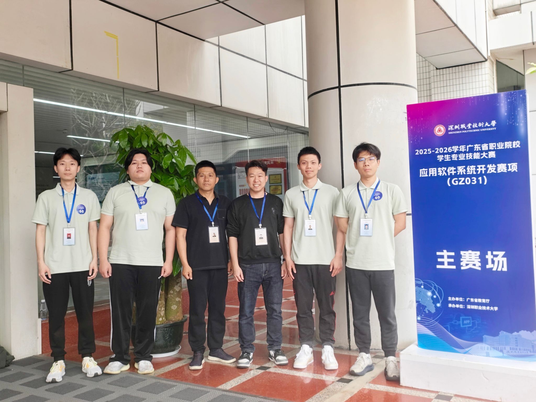 3月6日至3月7日,由广东省教育厅主办的2025—2026学年广东省职业院校技能大赛(高职组)应用软件系统开发赛项在深圳职业技术大学圆满落幕。经过激烈角逐,我校电子信息学院黄凌峰、郑慧君老师指导的陈振威、肖佳文、蓝堃、钟子恒同学,凭借扎实的专业基础和出色的现场发挥,荣获一等奖。