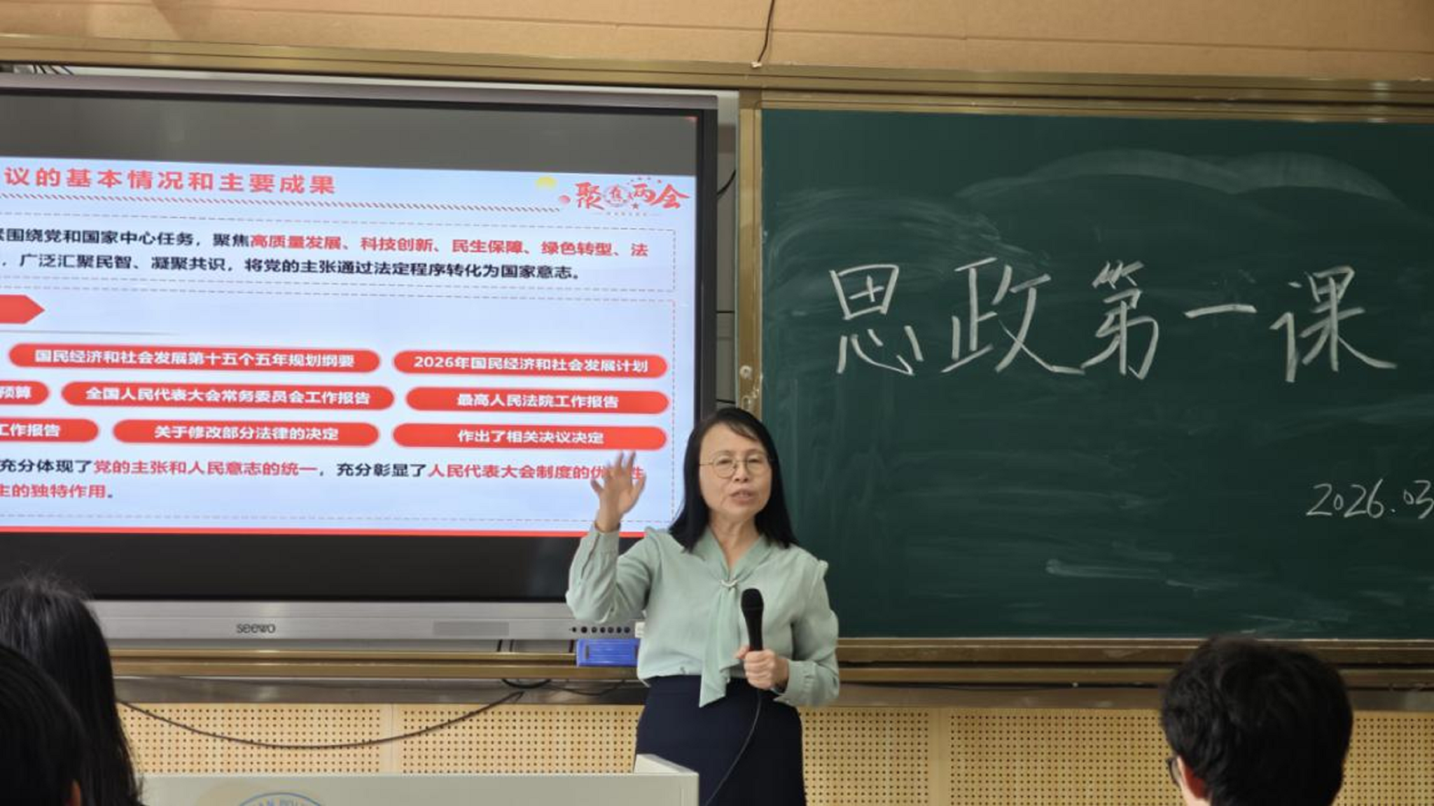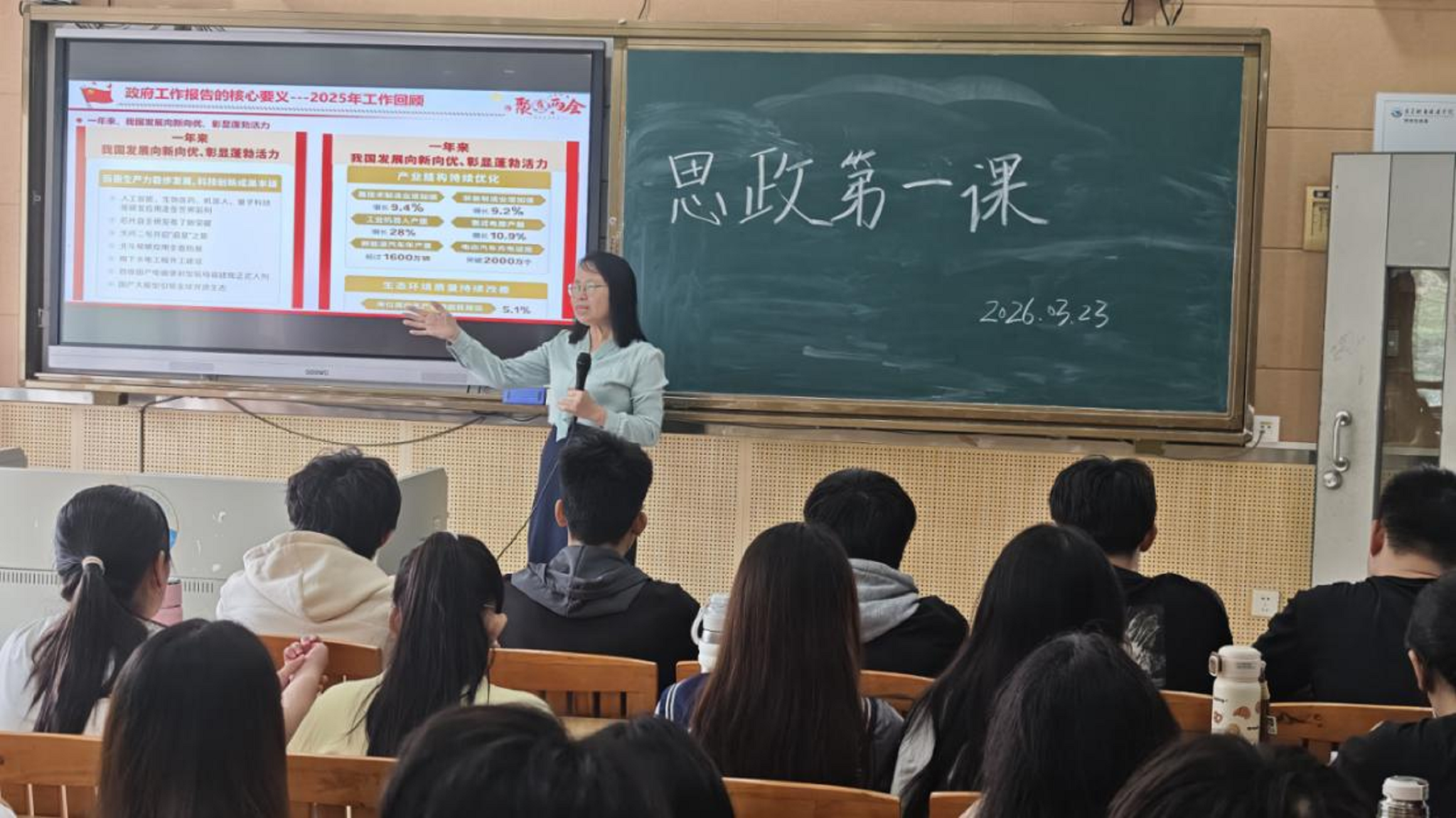 为深入学习贯彻2026年全国两会精神,将国家发展蓝图与青年学子成长成才紧密结合,3月23日,我校商学院(筹)行政负责人周虹教授走进25安全1班,以“蓝图已绘就,奋进正当时”为主题,为同学们带来一堂生动的思政第一课。