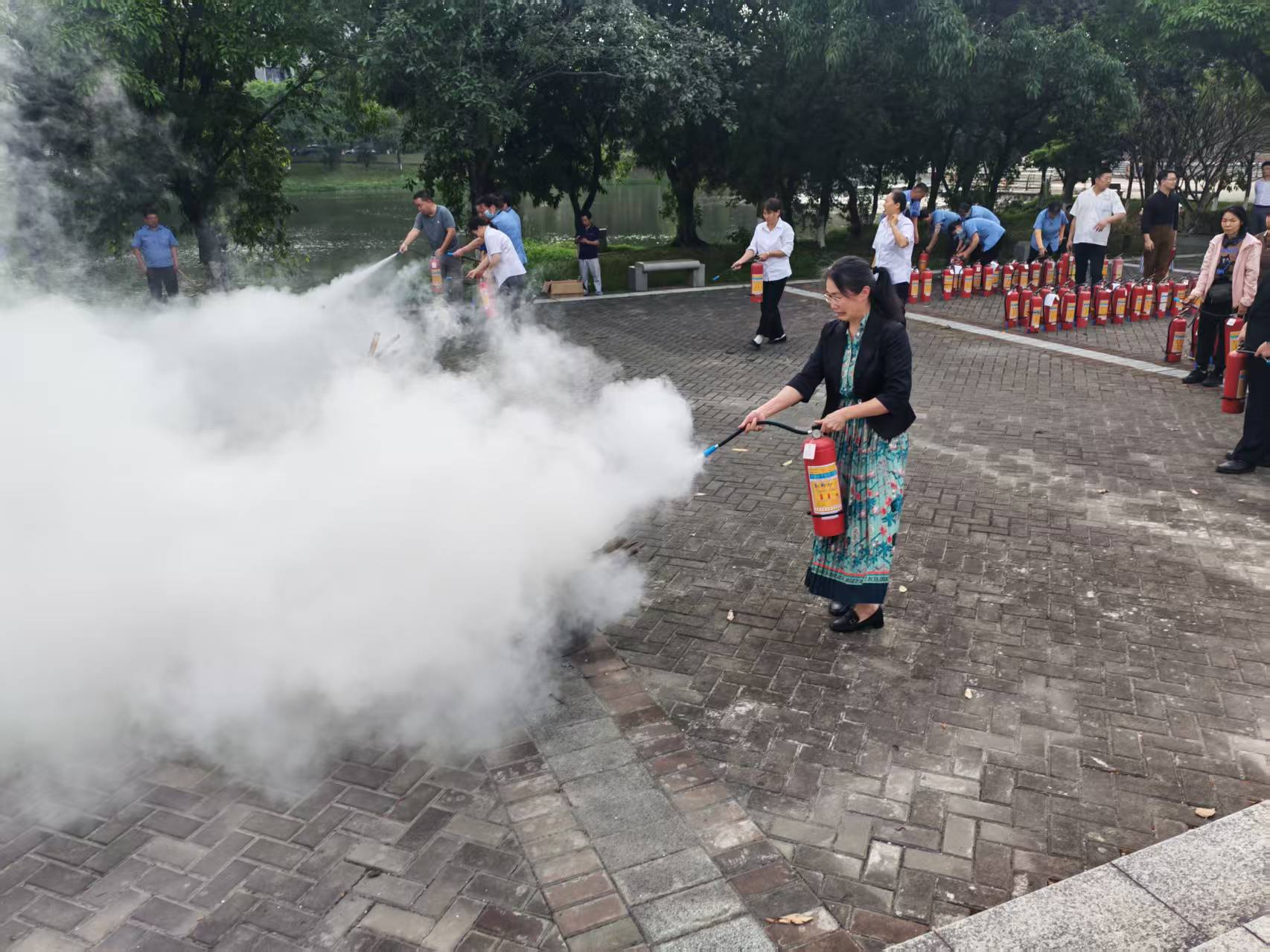 方宏杰教官现场讲解示范灭火器、灭火毯、防毒面具的使用方法,纠正常见错误操作,帮助大家掌握正确使用流程与操作要点。灭火体验实操环节,参训人员在教官的指导下熟练使用灭火器材进行灭火训练,切实提升实操能力。