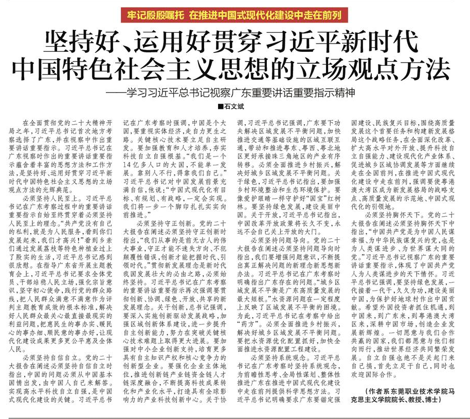 【东莞日报】坚持好、运用好贯穿习近平新时代中国特色社会主义思想的立场观点方法