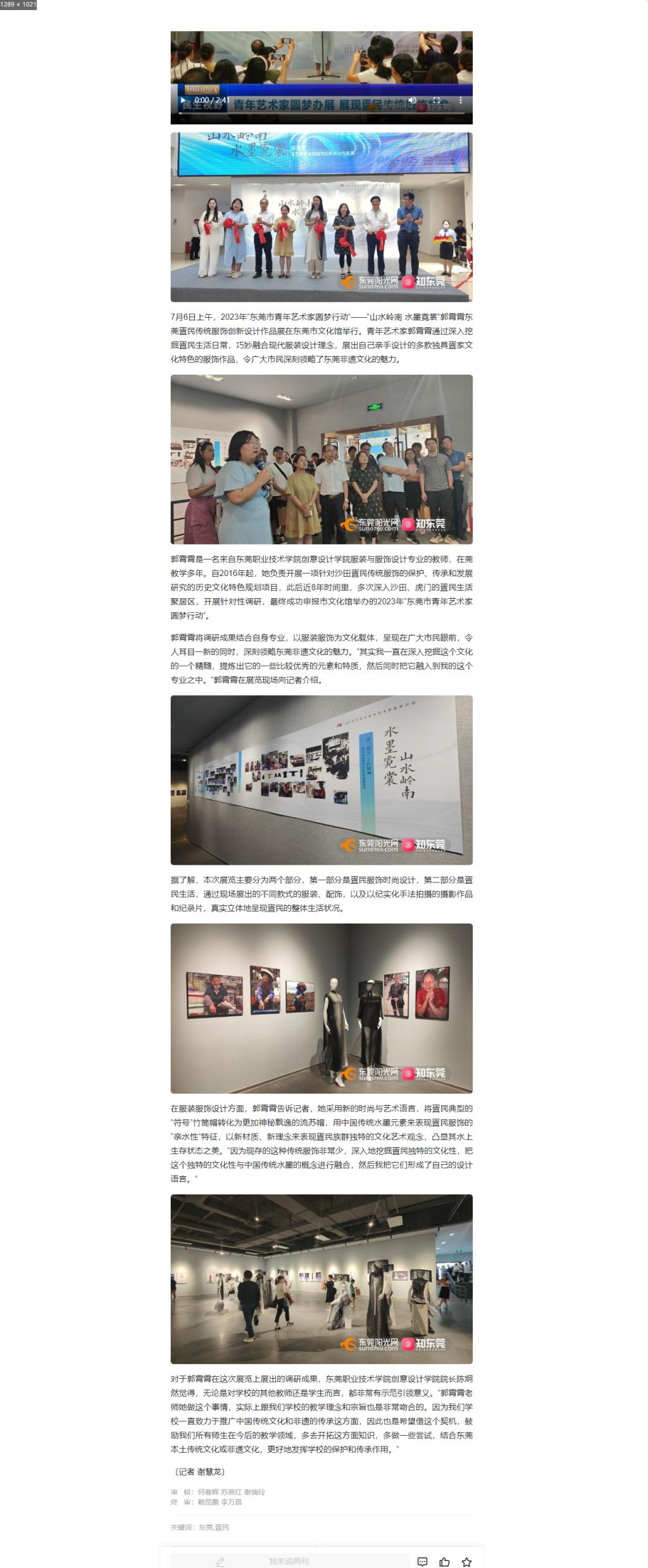 【知东莞】“山水岭南 水墨霓裳”郭霄霄东莞疍民传统服饰创新设计作品展开展