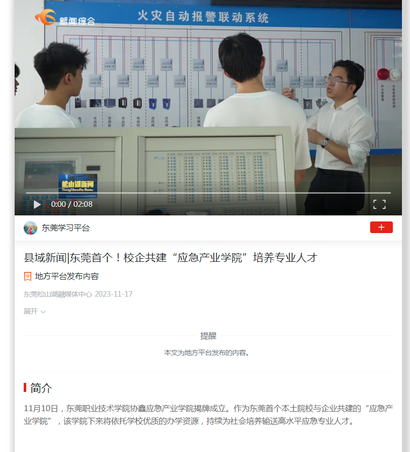 【学习强国】东莞首个!校企共建“应急产业学院”培养专业人才