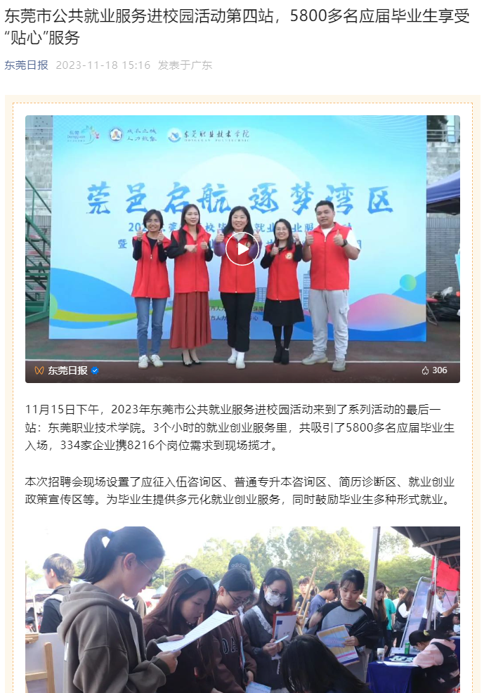 【东莞日报】东莞市公共就业服务进校园活动第四站,5800多名应届毕业生享受“贴心”服务