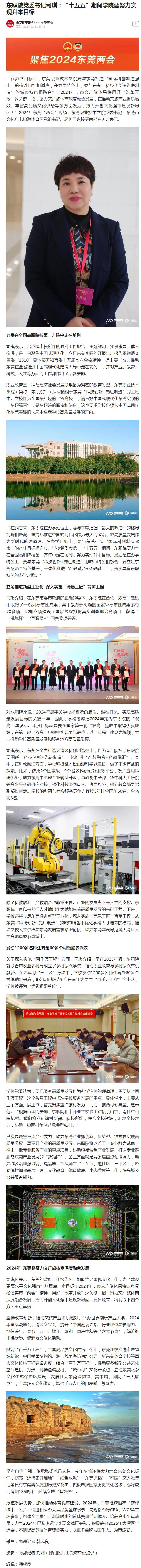 【南方都市报】东职院党委书记司琪:“十五五”期间学院要努力实现升本目标