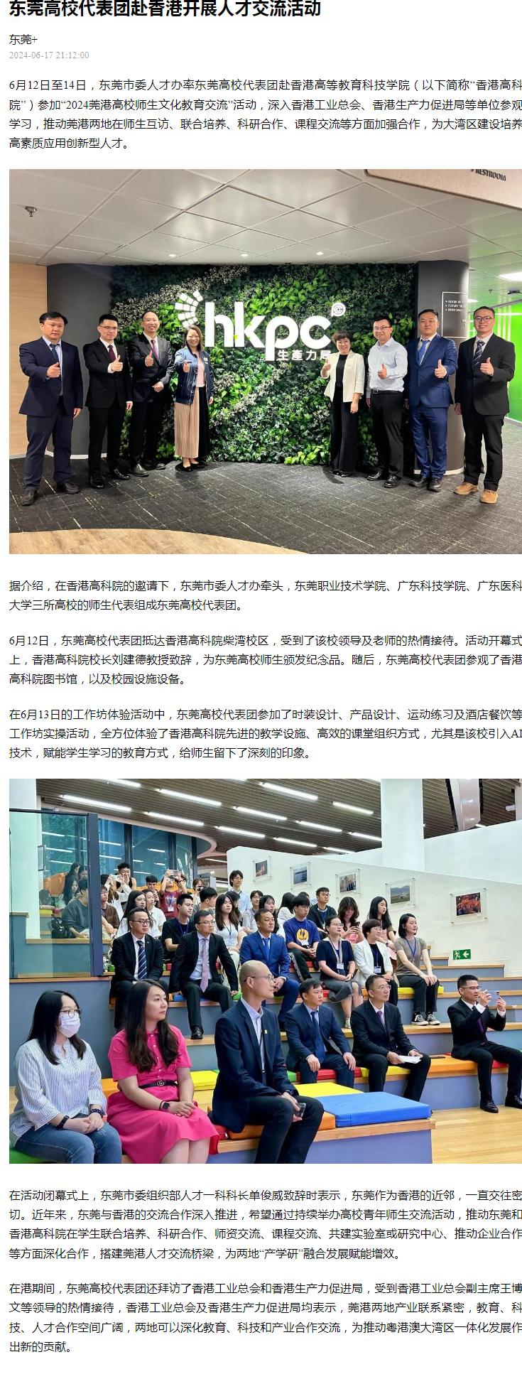 【南方+】东莞高校代表团赴香港开展人才交流活动