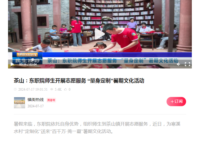 【知东莞】东职院师生开展志愿服务 “量身定制”暑期文化活动