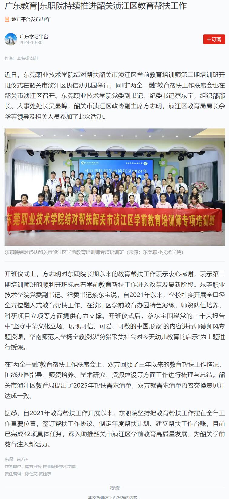 【学习强国】东职院持续推进韶关浈江区教育帮扶工作