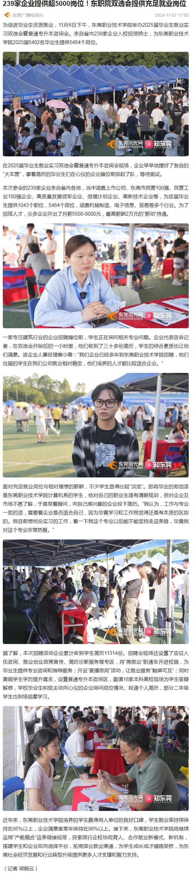【东莞广播电视台】239家企业提供超5000岗位!东职院双选会提供充足就业岗位