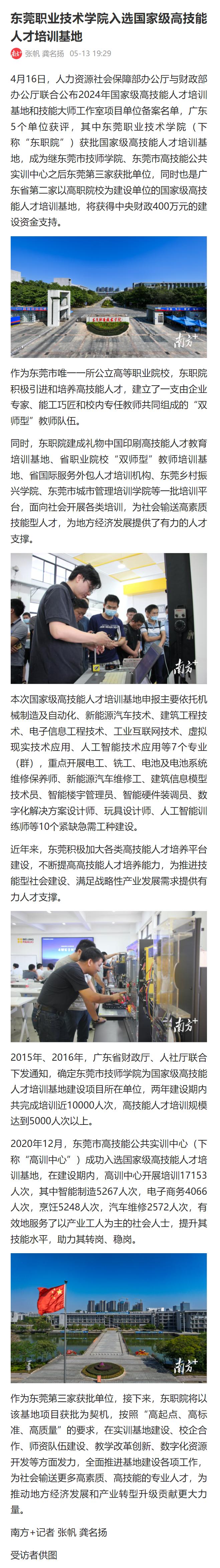 【南方+】东莞职业技术学院入选国家级高技能人才培训基地