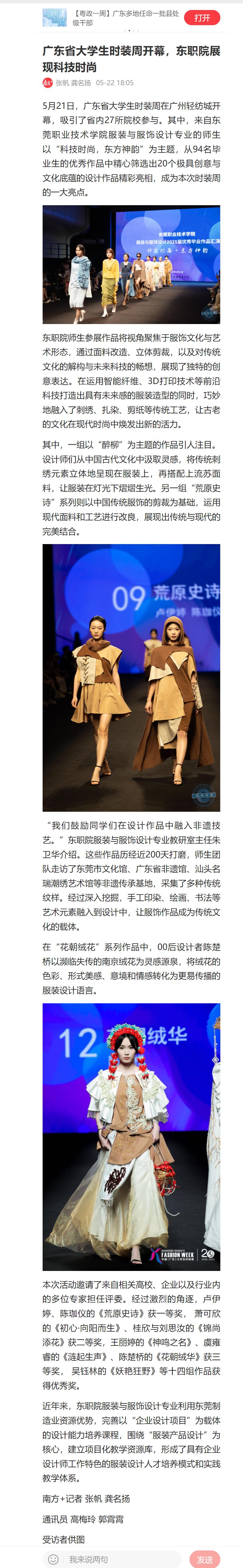 【南方+】广东省大学生时装周开幕,东职院展现科技时尚