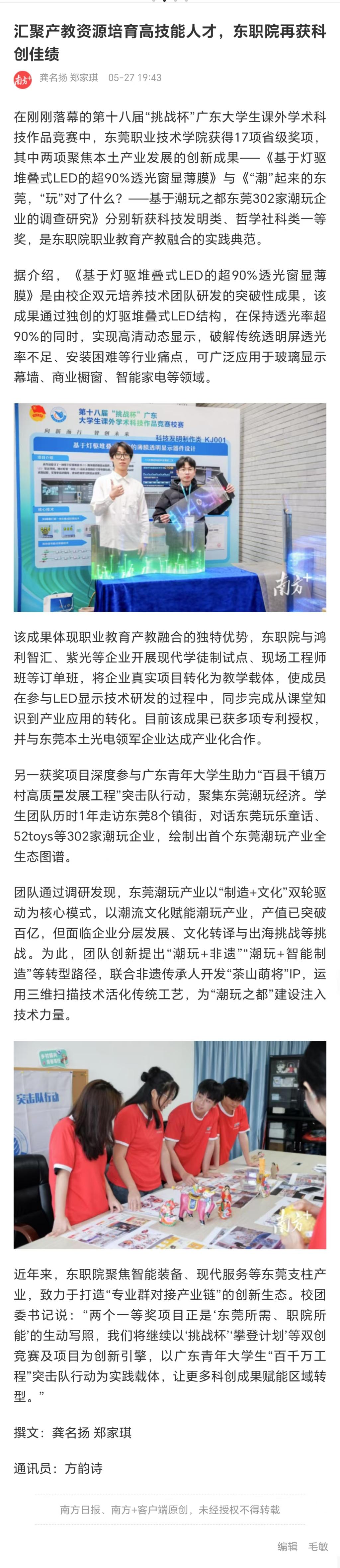 【南方+】汇聚产教资源培育高技能人才,东职院再获科创佳绩