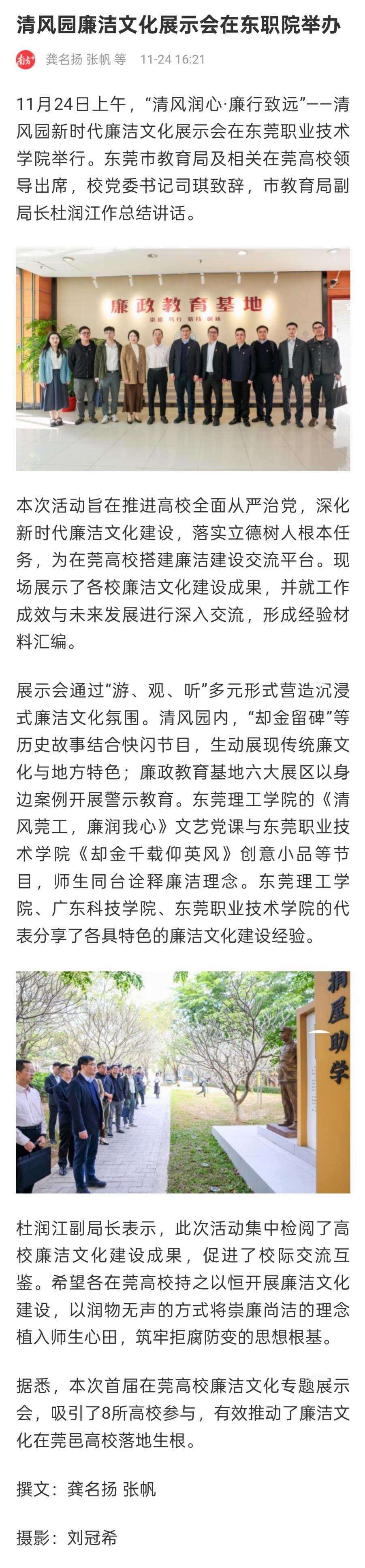 【南方+】清风园廉洁文化展示会在东职院举办