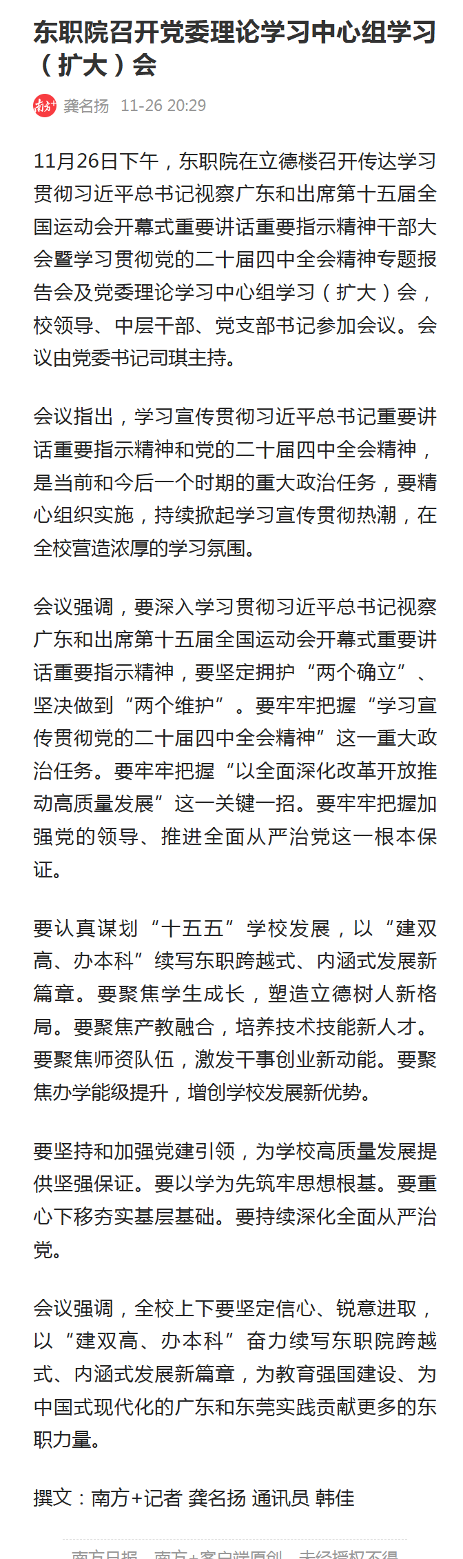 【南方+】东职院召开党委理论学习中心组学习(扩大)会