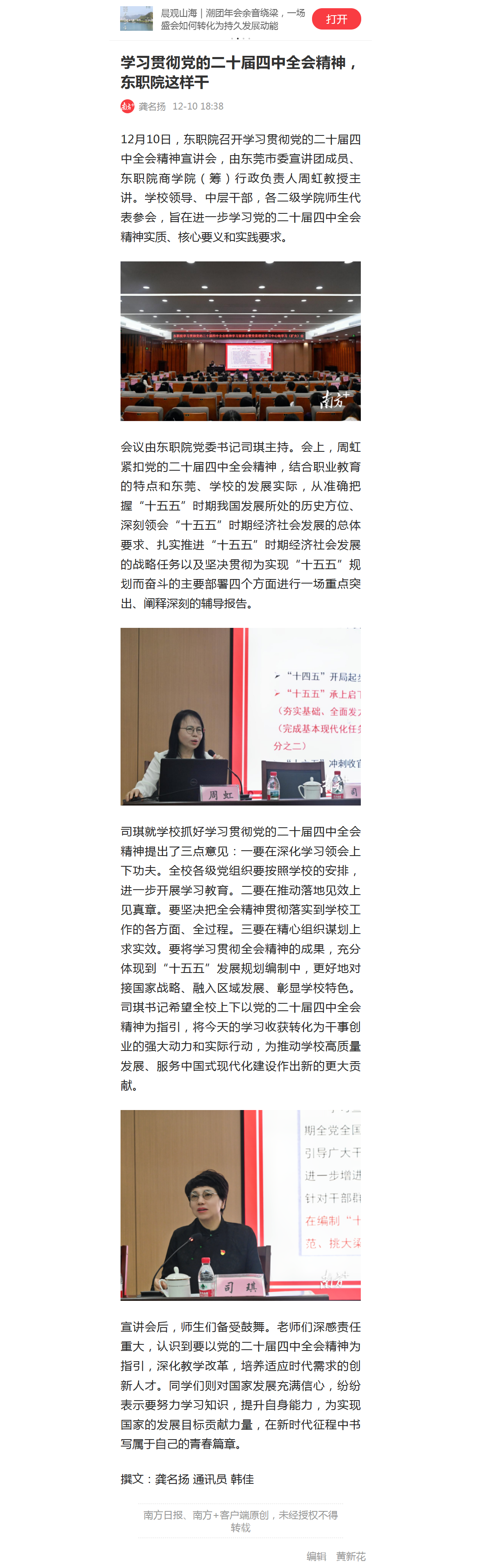 【南方+】学习贯彻党的二十届四中全会精神,东职院这样干