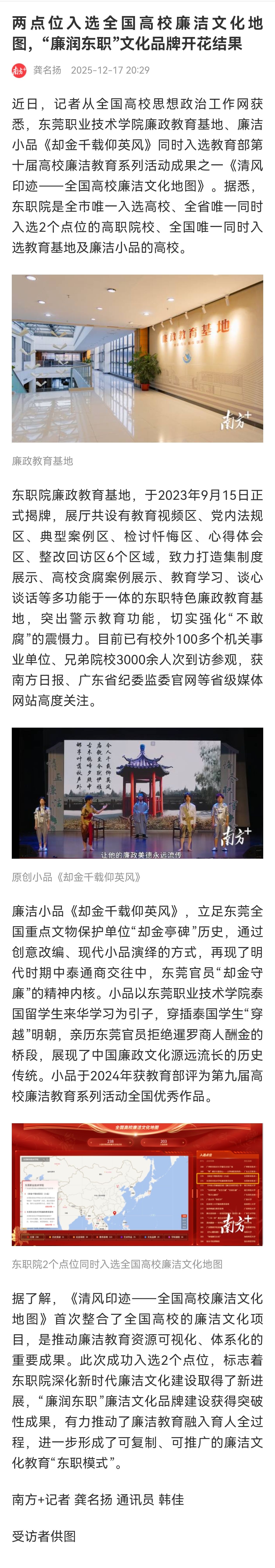 【南方+】两点位入选全国高校廉洁文化地图,“廉润东职”文化品牌开花结果