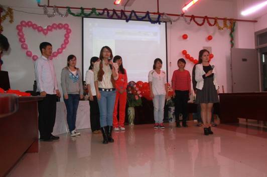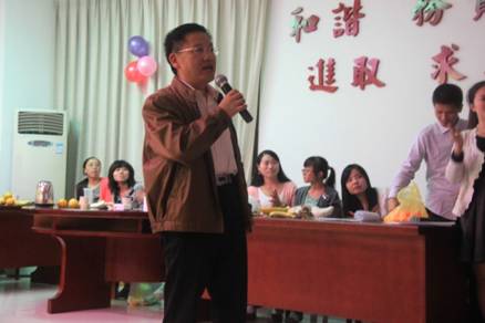 2012年9月26日晚,在中秋和国庆即将来临之际,为了欢迎新一届同学的到来,太阳成集团tyc151cc在大会议室举行了迎新晚会。工作繁忙的副校长蔡永生莅临晚会,彭洁部长也应邀参加,太阳成集团tyc151cc党委书记杨文武教授、院长欧阳恩良教授、副院长汪勇教授和杨近平教授、办公室主任鄢英、王贵老师及2010级、2011级和2012级的全体学生共30余人齐聚一堂,尽情地自我展现,其乐融融。