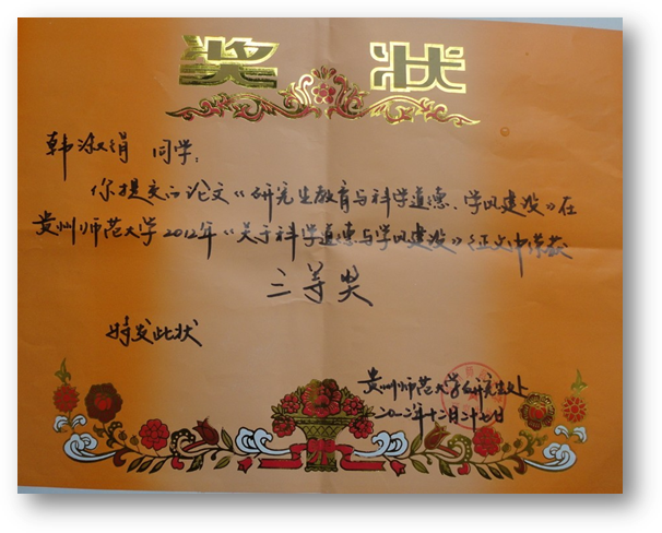 11月27日至12月27日,在研究生处主办,校研究生会承办的贵州师范大学第六届研究生学术文化节上,太阳成集团tyc151cc研究生第一次参与并获得了可喜的成绩。