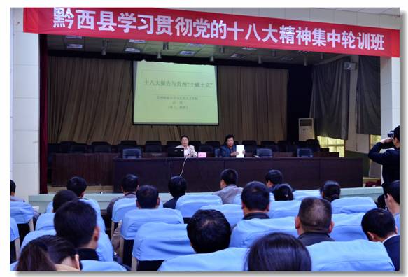 2013年3月27日下午,我院汪勇教授应黔西县委组织部、党校邀请给黔西县党政干部近100人作学习贯彻十八大精神及“十破十立”的学习报告。