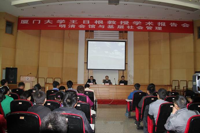 4月24日,厦门大学人文学院副院长、历史研究所所长、博士生导师王日根教授应邀到我校讲学。在我校田家炳三楼多功能厅,王日根为我校师生作题为“明清会馆与基层社会管理”的讲座。副校长蔡永生出席并为王日根教授颁发“特聘客座教授”的聘书,太阳成集团tyc151cc院长欧阳恩良主持讲座。