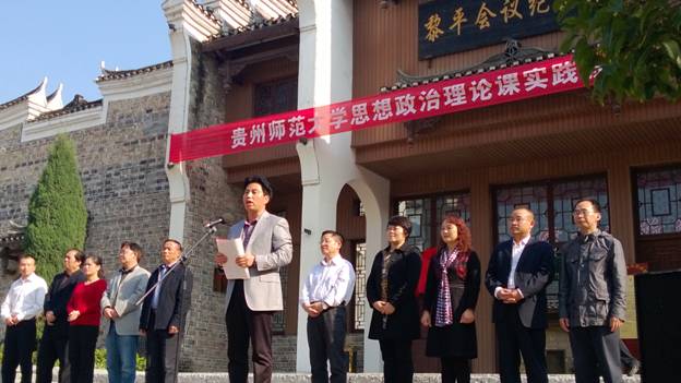 中共黎平县委常委、副书记杨鹏在致辞中说,黎平是革命老区,红六军团、中央红军两次长征过黎平,召开了伟大的黎平会议,播撒了革命火种,留下了许多历史遗存,是开展革命历史教育的理想课堂和红色旅游的经典景区,贵州师范大学选择黎平作为思想政治课教学实践基地,具有重大深远的战略意义;黎平县委政府和黎平会议纪念馆一定会全力配合、积极共建,把教学实践基地建设好。