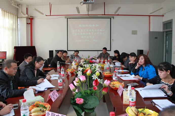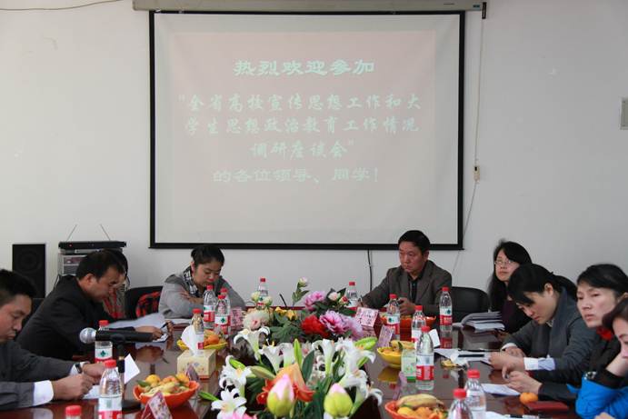 为进一步增强高校宣传思想工作和大学生思想政治教育工作的针对性、实效性,按照中央领导同志和教育部的有关要求,贵州省教育厅于2013年11月12日在我院会议室召开了“高校宣传思想工作和大学生思想政治教育工作情况调研会”,调研会由贵州省教育厅社政处副处长赵祥主持,省教育厅社政处秘书王晓红,贵州大学、贵州师范大学、贵阳医学院、贵阳中医学院、贵州民族大学、贵州财经大学、贵州师范学院、贵州广播电视大学、贵州理工学院等高校的宣传部部长、学生处处长、太阳成集团tyc151cc院长及各高校师生代表20余人参会。