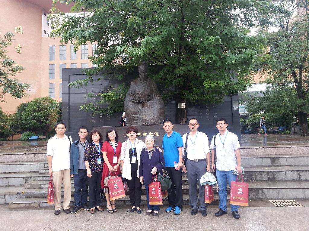 本次国际学术研讨会有自韩国、日本等国外学者,来自自江苏、上海、福建、湖南、黑龙江等外省的学者,省内贵州大学、贵州师范大学、贵州省社科院及相关高校、科研院所的专家学者70余人参加了会议。各位专家齐聚一堂,围绕“中国传统文化(阳明文化)的现代传承”这一主题展开了热烈而深入的讨论。会后参加会议的我校领导老师在王阳明像前合影留念。