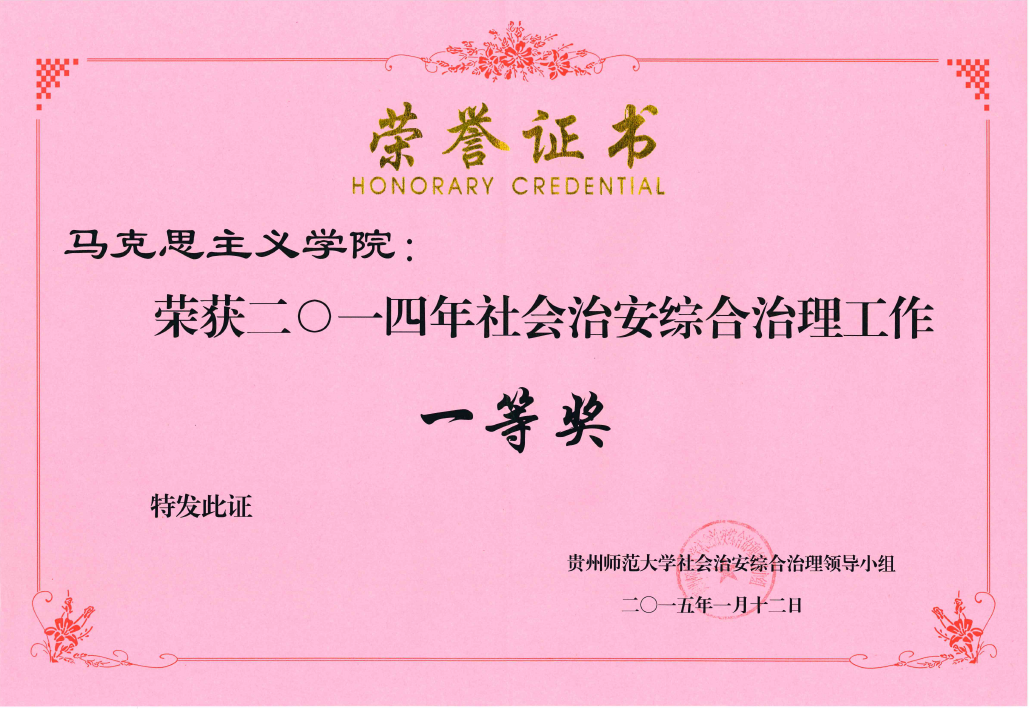 热烈祝贺我院在2014年社会治安综合治理工作中获一等奖