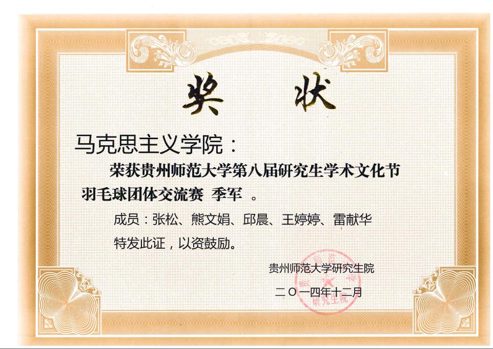 热烈祝贺我院在2014年贵州师范大学第八届研究生学术文化节