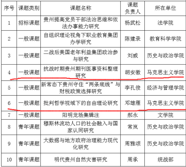 祝贺我院胡安徽、邓雄雁获批2015年度贵州省社科规划课题