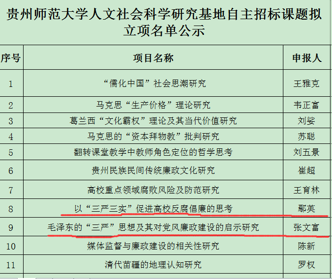 热烈祝贺我院张文富、鄢英、刘五景老师获批贵州师范大学2015年人文社会科学研究基地自主招标课题