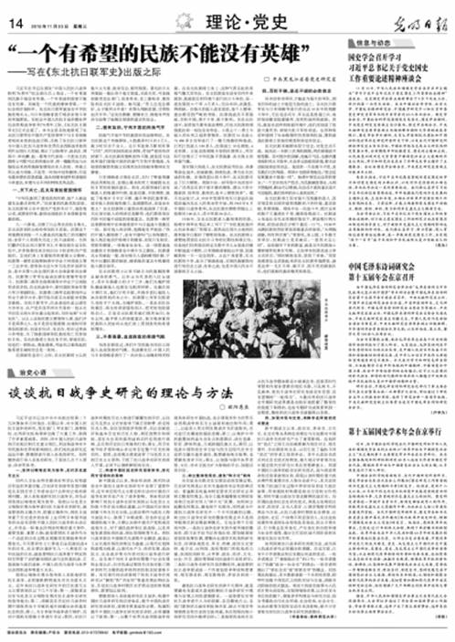 《光明日报》2015年11月25日第14版“理论·党史”刊登了我院欧阳恩良教授撰写的《谈谈抗日战争史研究的理论与方法》。该文一天之内,即被求是网、人民网、光明网、新华网、中国共产党新闻网、中国社会科学网、宣讲家网、中国理论网、中国文明网、中国高校人文社科信息网、近代中国研究网、中工网、中国共产党历史网、抗日战争纪念网、解放网、今日头条网及江苏社科规划网、今日新疆网、江苏大讲堂、福建人大网等数十家有影响的网站全文转载。