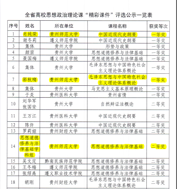 热烈祝贺我院两个学科组和五位教师在贵州省高校思想政治理论课“精彩课件”评选中喜获佳绩