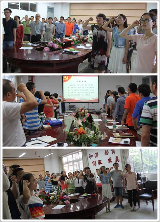 按照《中共贵州师范大学委员会关于开展纪念中共共产党成立95周年系列活动的通知》(校党发【2016】21号)文件精神,在学院党委的认真组织下,于6月24日在宝山校区学院会议室开展了新党员入党宣誓暨老党员重温入党誓词活动,学院党委书记杨文武领誓,全体教师党员和学生列队树立,面对党旗,庄严宣誓。