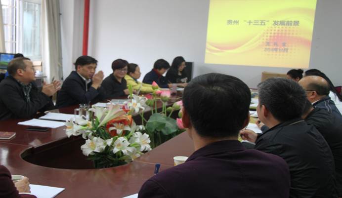王礼全研究员从“十三五”时期贵州省发展面临的宏观环境、贵州省发展的总体部署、以及“十三五”规划的主要特点和亮点、贵州省“十三五”规划的思考四个方面进行了讲解。同时就“十三五”期间贵州省坚持守住发展和生态两条底线,与时俱进实施大扶贫、大数据两大战略行动,不断强化新型城镇化建设和工业强省战略,推动贵州进入了后发赶超、全面建成小康社会进行详细讲解。