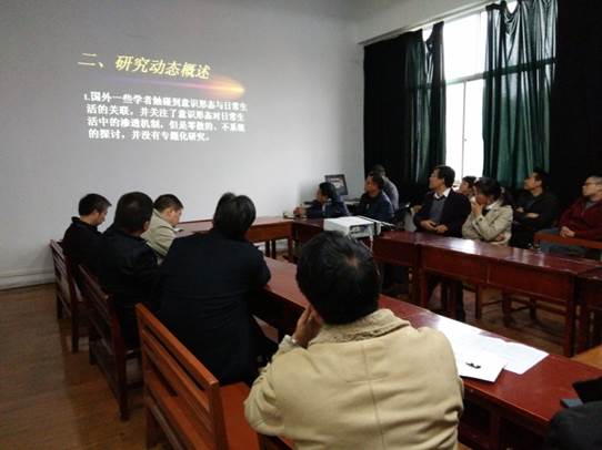 申报2017年省级以上项目的老师对此次选题论证会非常重视,会前作了充分准备。此次项目选题申报共有23位老师申报选题,其中9位老师经过精心准备,制作PPT,进行选题论证,他们分别陈述了各自的研究设想、选题意义、思路框架等,各位专家从选题的现实性、可行性、创新性等方面提出了自己的意见建议,预申报选题的老师接受了来自专家组的评审并认真听取与会专家及老师的意见和建议,其他各位参加申报的老师们针对课题也是各抒己见,现场讨论热烈。其他的老师则因为各种原因私下或另找时间与其他专家沟通和讨论。在此基础上,有的继续深入开展项目论证,有的则需要重新考虑选题等。整个选题论证会一直持续到晚上七点过钟才结束并取得了良好的效果,为下一步的项目论证打下了重要的基础。