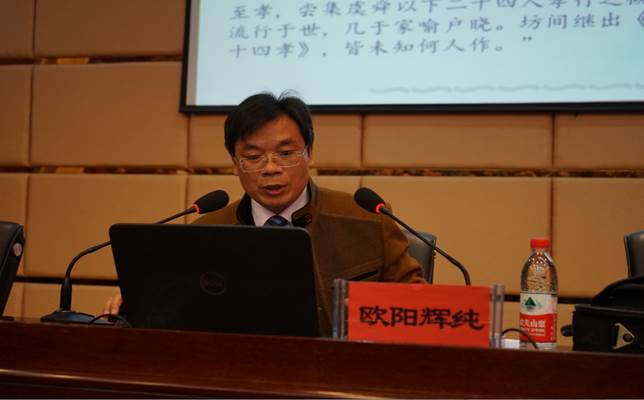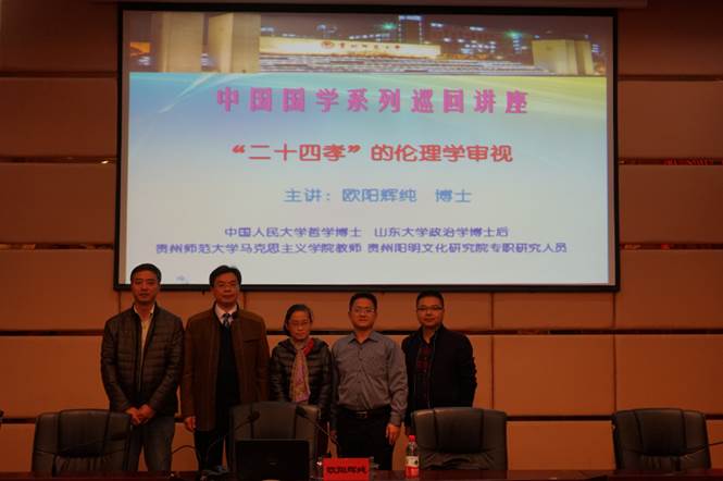 2016年11月16日,我院学者欧阳辉纯博士受到贵州省社科联的邀请,参加了由贵州省社科联举办的贵州省“社科名家上讲坛”第四期专题讲座活动,在贵州省经济学校作了一场题为《“二十四孝”的伦理学审视》的精彩学术报告。本次讲座由贵州省经济学校副校长黎元波主持,贵州省社科联党组成员、副主席刘宗严和社科联科普部副部长冯新贵出席,贵州省经济学校全体教职工和学生代表(每班选2名),共计200多人聆听了本次讲座。讲座主要分为三个部分: